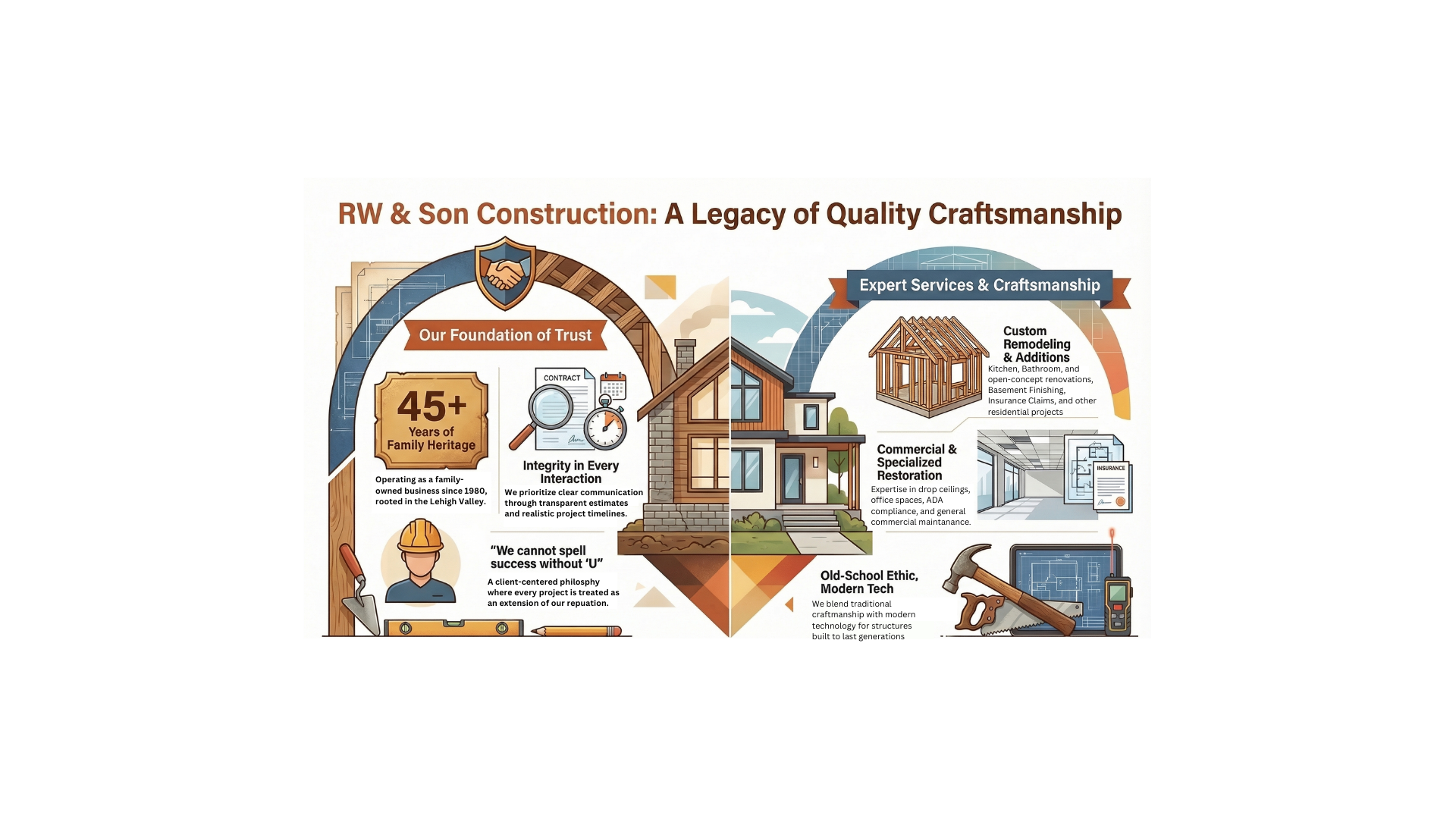 At RW and Son Construction, our commitment is built on more than just blueprints and building codes; it is built on a foundation of family values and professional integrity. As a family-owned and operated business in the Lehigh Valley, we don't just see a project as a job site—we see it as an extension of our own reputation. This perspective drives us to maintain a standard of excellence that is becoming rare in today’s fast-paced construction industry.